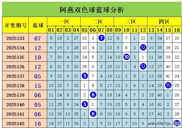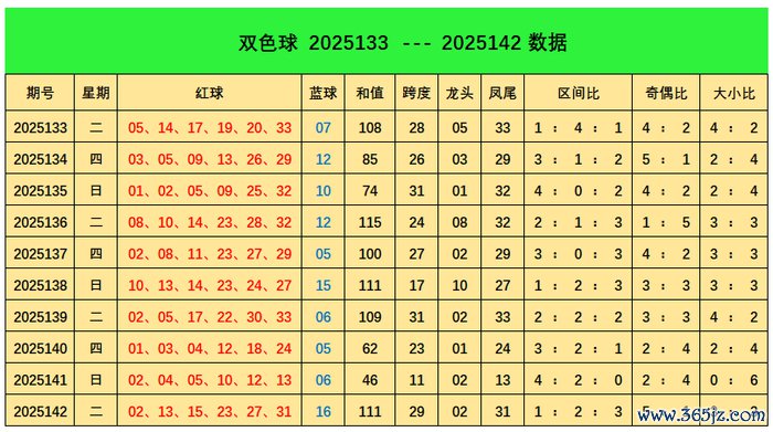 上期回归:双色球第2025142期开出奖号:红球02、13、15、23、27、31;蓝球16,其中红球三区比为1:2:3,奇偶比5:1,大小比为3:3,蓝球开出1路号码16。